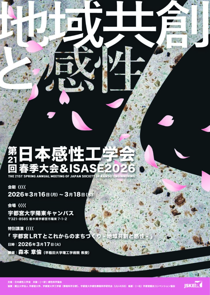 2026年3月16日(月)から18日(水)の3日間、宇都宮大学陽東キャンパスをメイン会場として「第21回日本感性工学会春季大会 & ISASE2026」を開催いたします。